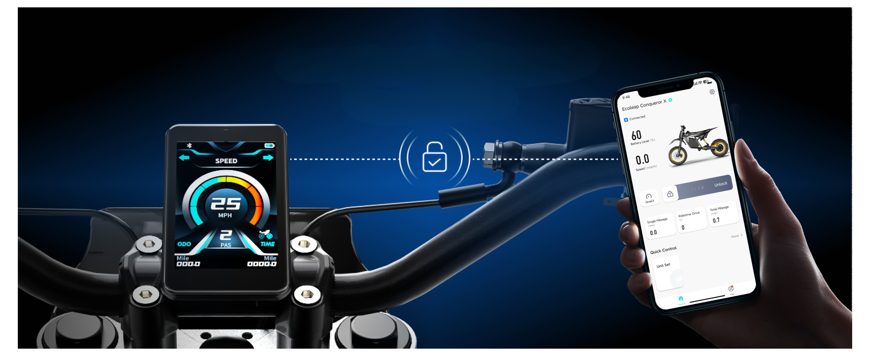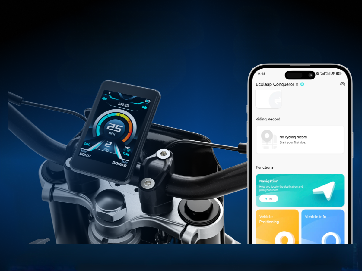 Your phone is now your command center. Connect to the Ecoleap Smart App to unlock the full potential of your ride: