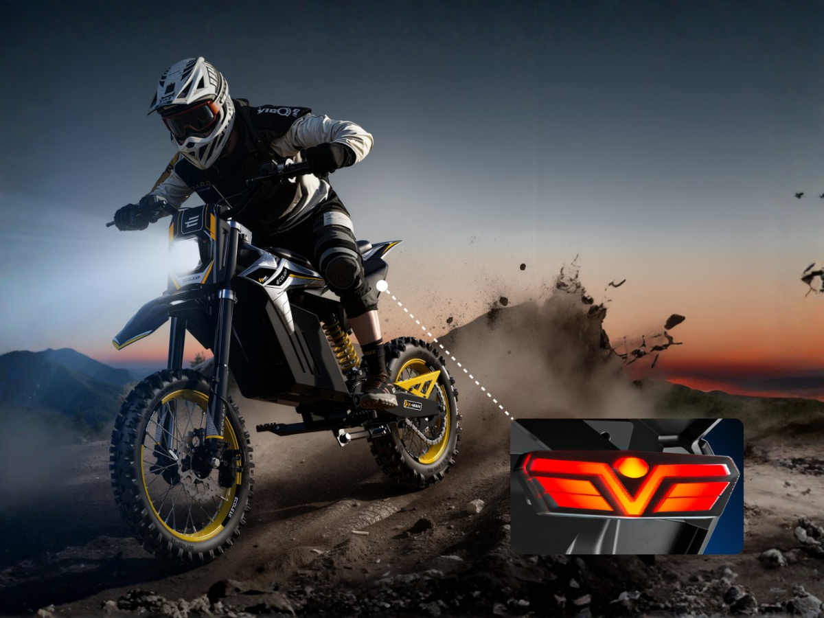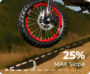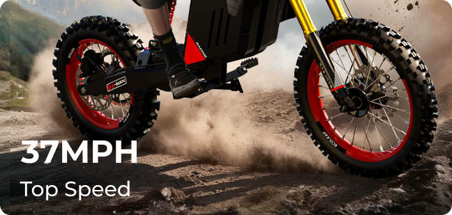 Top performance mid-drive electric dirt bike. 3500W Peak Power. 37 MPH Top Speed. Ready to conquer any terrain.